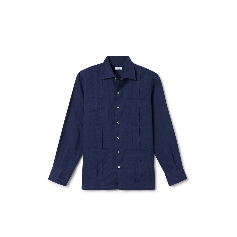 Camisa para hombre tipo Guayabera inspirada en el histórico modelo de origen cubano. La camisa formal por excelencia en Latinoamérica. Con dos bandas plisadas delanteras y traseras y 4 bolsillos. Classic fit ideal para llevar también como sobrecamisa con camiseta interior. Manga larga con puños abotonados. Tejido de origen español y confección local. Composición 55% lino y 45% algodón, para un tacto más agradable y menos sensible a las arrugas. Lavado a máquina. Lino con el certificado European Flax® sello que confirma el cultivo del lino en la UE.